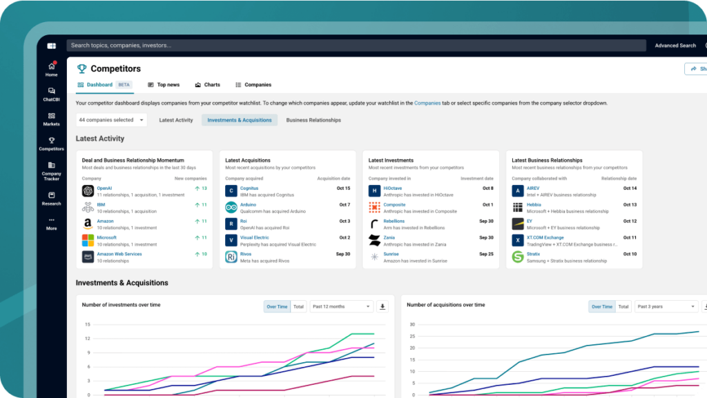 Real-time visibility into your competitors’ investments, acquisitions, and partnerships